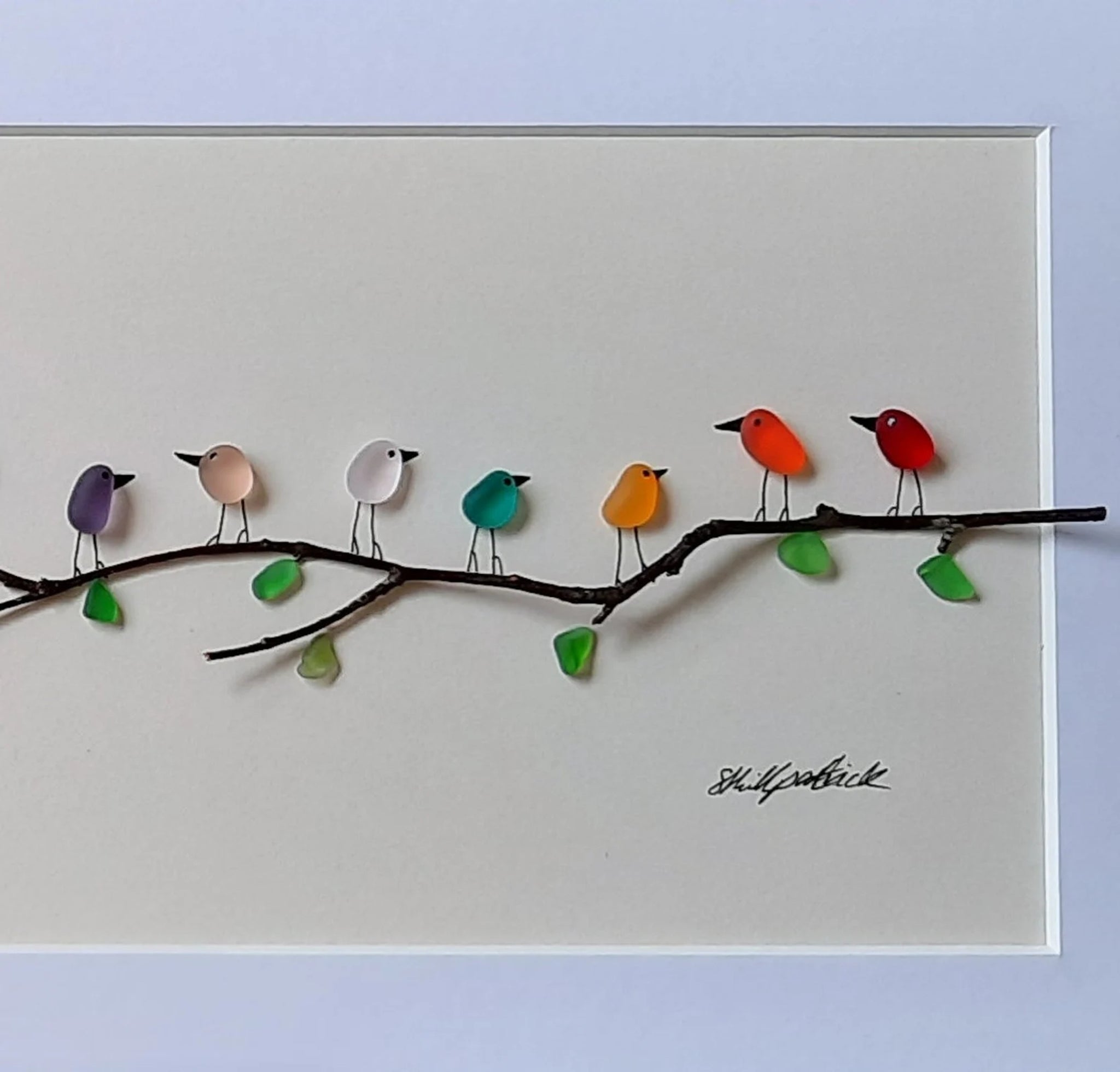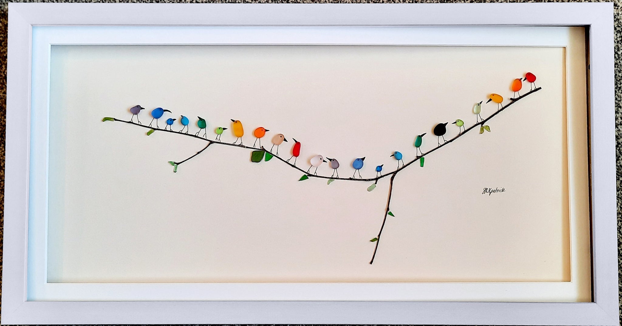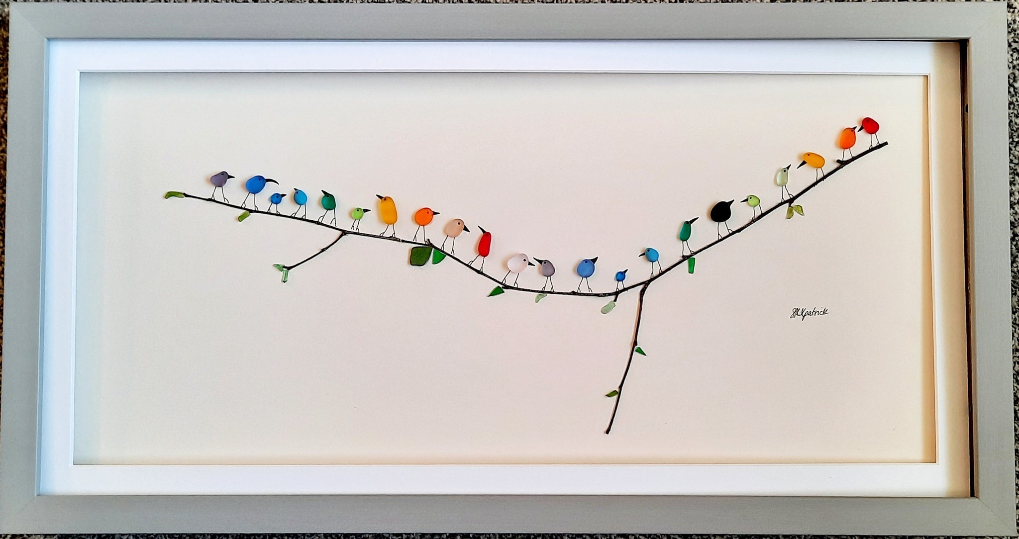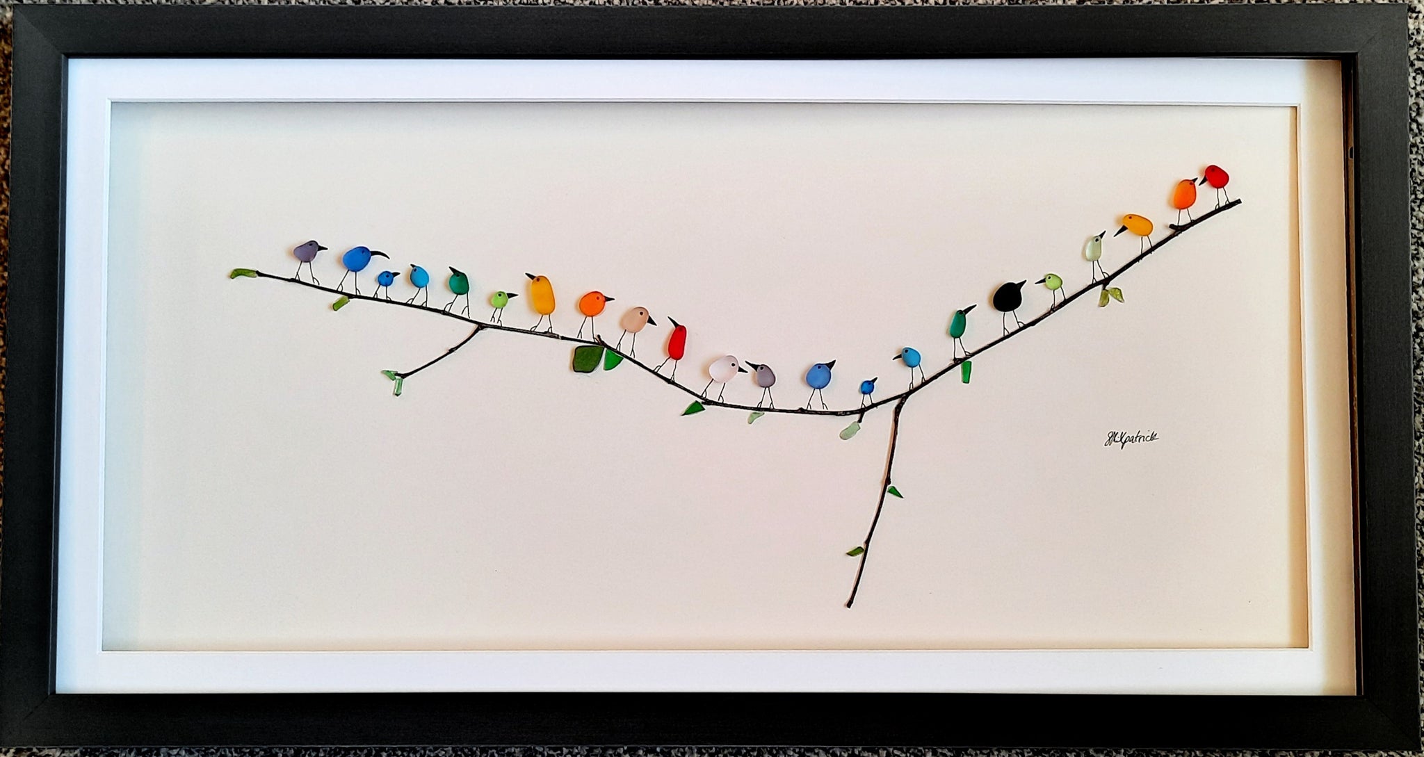 "Panoramic Rainbow Birds" - a unique handmade artwork by Sophie Kirkpatrick.